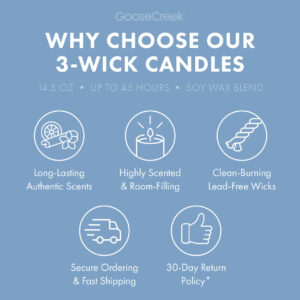 Give yourself the ultimate aromatic treat by ordering a blueberry candle from Goose Creek Candles. Our blueberry-inspired candles are a great alternative to going to a local store and getting fresh blueberries for at-home enjoyment. However, this large 3-wick candle offers much more than the scent of berries.