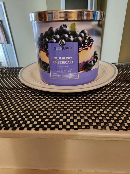 It smells so heavenly. Combination of of fresh blueberries and cheesecake. Is one of my favorites.