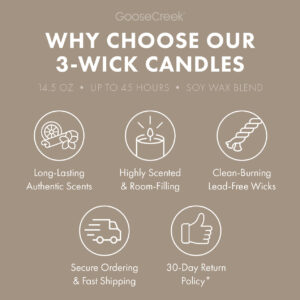 I recently discovered Goose Creek candles and I am a huge fan! For many many years I was a BBW customer and after so many disappointing candles not to mention the cost, I have switched to GC and have not been dissatisfied with any of their candles. I love that it’s a family owned business with excellent choice of candles and sale prices that are unbelievable. The throws have been 8-10 and even with a huge open space you can smell them all day long. They burn beautifully and all the way down to the bottom of the jar. There isn’t anything I don’t love about the GC candles. Haven’t tried their other products, but I will. Thank you GC and don’t change a thing!
