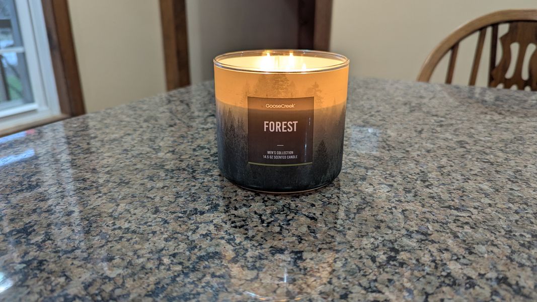 My husband absolutely loves this candle scent. When it’s lit it remind us of being in a cabin in the woods or taking a hike in the Smokies.