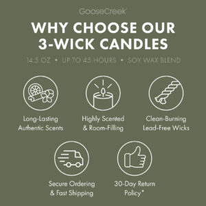 I hate when candles don’t burn evenly. Goose Creeks always burn evenly and smell great for excellent value.