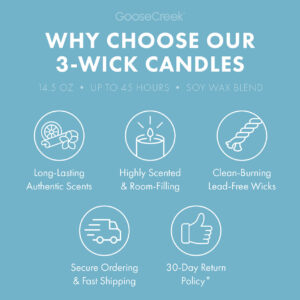 Goose creek candles are my new favorite! This scent is so refreshing! The candles burn nice and my house smells amazing! I have 2 dogs but no dog smell in this house thanks to these odor eliminating candles!