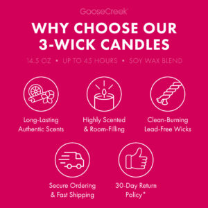 This candle is packed full of nostalgia! This is my first order from Goose Creek but it will not be my last. I was so impressed with the smell of the candle before I even burned it. It really smells like my beloved Strawberry Shortcake dolls! I burned the candle for around three hours the first time and it smells just as good while burning. I like that the smell of the candle is strong enough to spread throughout my living room but not so strong that I feel like I’m being knocked over by it. The three wicks lead to even melting of the wax so the candle has cooled to a perfect even layer of wax after each use so far (three uses).