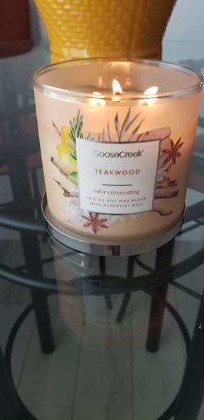 I really like this scented candle! It’s aroma is rich without being overpowering! I’ve had a similar Teakwood scent from a popular brand but can never burn that other brand’s long due to it burning my eyes and nose (had to discard that other brand). This Goose Creek Teakwood candle is in contrast, perfection; clean, pleasant and inviting. Highly recommend and will buy again!